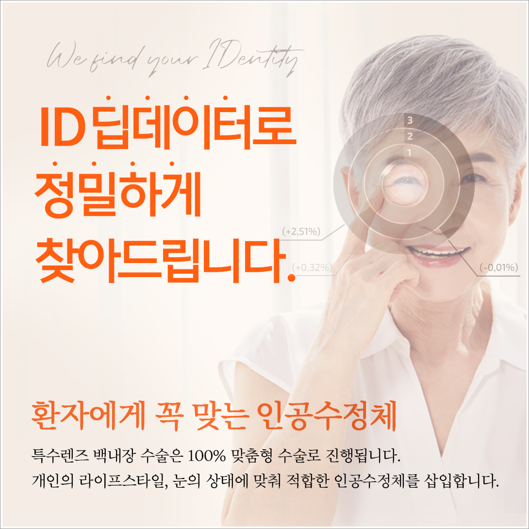 대표적으로 인공수정체 렌즈의 종류 선택에 따라 차이가 나타나게 됩니다.