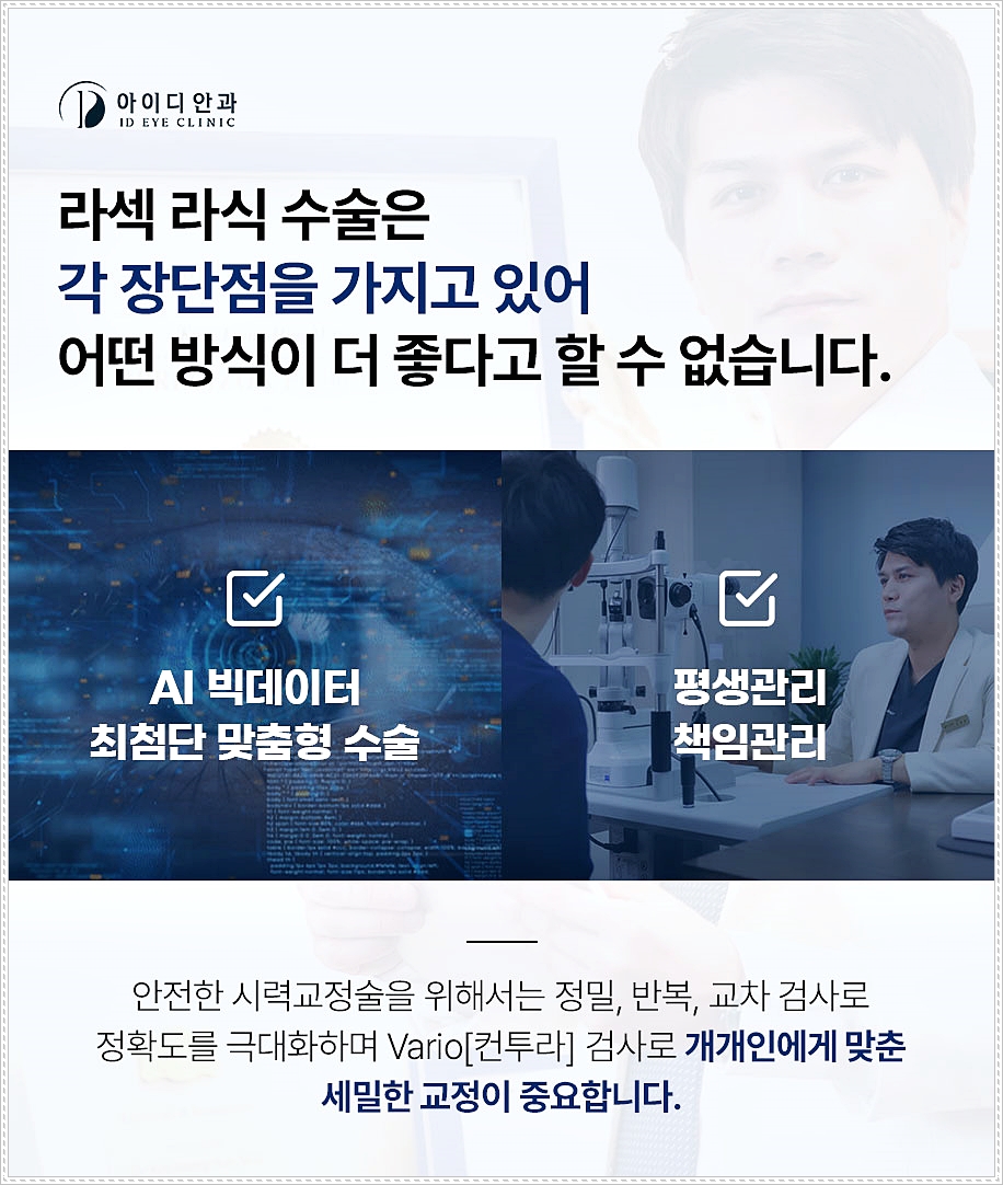 눈의 특성에 맞는 레이저는 불필요한 손상을 줄이고 오차 없는 과정을 만들어낼 수 있는데요. 장비를 선택하는 과정은 의료진의 실력 및 노하우에 따라 달라지기에 신중하게 살피는 자세가 필요했어요.